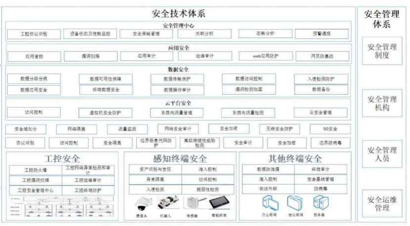 安全防护对象应覆盖园区的网络基础设施、信息系统、大 数据、物联网、云平台、工控系统、智能设备等,所有安全控 制应以安全方针、策略为指导与依据,落实安全管理和安全技 术两大维度的具体实施与维护,以业务系统的安全运营为核心, 并辅以运维与培训贯穿全过程,形成风险可控的安全保障框架 体系。其中安全技术体系包括: