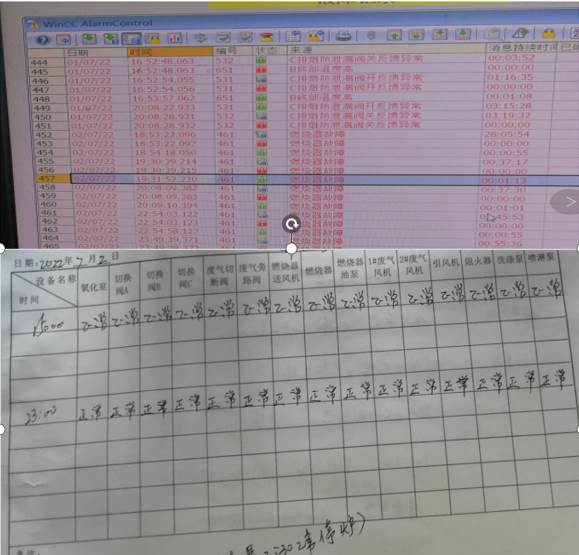 2.日常操作记录与实际运行状态不一致。如某企业2022年7月2日从18:53开始到23:50,燃烧器一直持续故障报警,但操作记录均为“正常”。