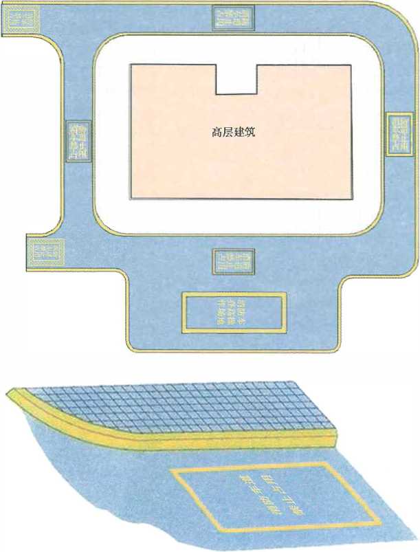 图12-2 消防车通道警示标志、 消防车登高操作场地标识示例