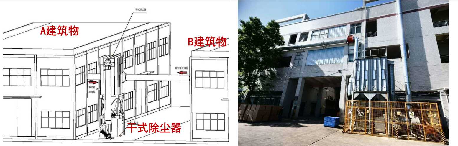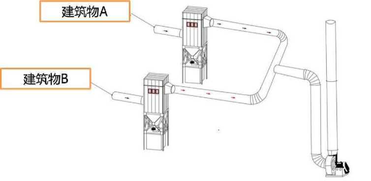 两栋独立的建(构)筑物内产尘点共用一套除尘系统