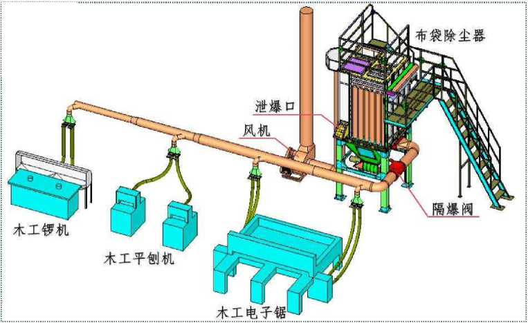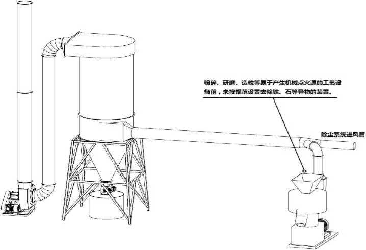 不同建构筑物除尘系统互联互通,一旦发生粉尘爆炸,所有通过除尘系统连接的区域都会受到爆炸波及,导致事故的影响范围扩大,可能造成更多 的人员伤亡。