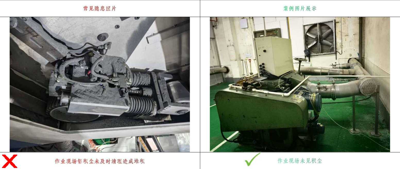 1.《工贸企业粉尘防爆安全规定》(应急管理部令第6号)第十五条;2.《工贸企业重大事故隐患判定标准》(应急管理部令第10号)第十一条第三 检查依据