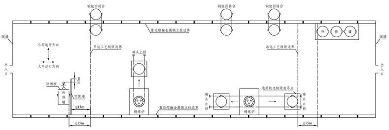 图2 钢水罐冷(热)修工位和铁水罐冷修工位示意图 |