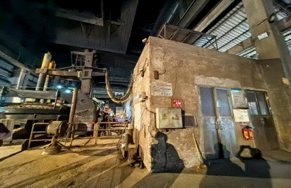 (1) 熔融金属吊运行走区域的正下方地坪区域内是否设置六类人聚集场所(如图3); (2) 熔融金属吊运行走区域的正下方地坪区域内是否存在工具室、备件室等被违规用做休息室的情况(如图4); (3) 冷、热修工位设置的位置及防护墙是否符合要求(边界间距大于等于15米,高度大于等于2米,宽度超出热修操作工位1米以上的实体墙,如图5); (4) 炼钢厂位于车间架空层平台的转炉操作室面向熔融金属吊运侧的出入门、观察窗是否采用实体墙完全封闭; (5) 炼钢厂架空层平台的AOD炉、VD炉、VOD炉的操作室其面向钢水吊运侧是否采用实体墙完全封闭; (6) 地坪区域朝向熔融金属吊运侧操作室是否在熔融金属吊运侧立柱边线以内; (7) *电炉操作室和精炼炉操作室的观察窗未采取防喷溅措施(如图6); (8) 炼钢厂连铸流程采用钢水罐水平连浇车或者钢包回转台单跨布置的连铸平台操作室,其面向钢水、液渣吊运侧未采用实体墙完全封闭的外墙,在连铸平台靠近熔融金属吊运侧的立柱边线以内; (9) *重点查冶金起重机、钢包及吊具合规情况,包括但不限于: n 冶金起重机的年检报告; n 钢包及耳轴、吊具的年检报告; n 钢丝绳的检查和更换记录; n 声光报警器有效性。 |