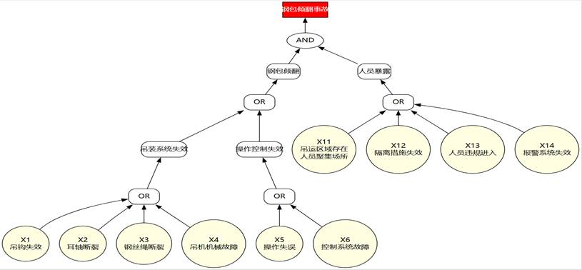 以“钢包倾翻事故”为顶事件进行故障树分析 |