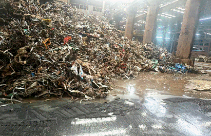 图3 *炼钢原材料场地废钢堆放存在雨水淋湿风险 |