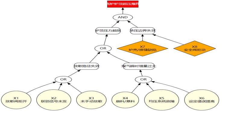 以“高炉炉顶超压爆炸”为顶事件进行故障树分析 |
