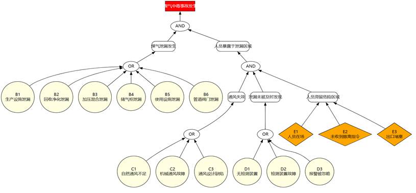 以“煤气中毒事故”为顶事件进行故障树分析 |