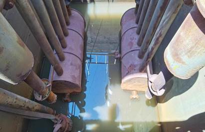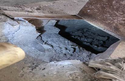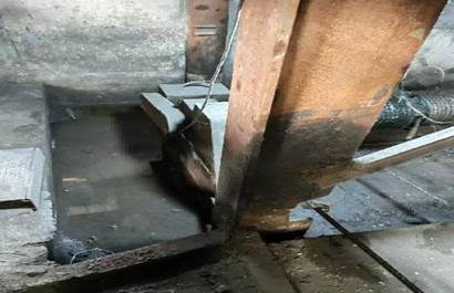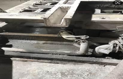 (1) 事故坑、炉下渣坑、炉前平台、炉基区域、厂房内吊运和地面运输通道等6类区域是否存在生产性积水(如图1); (2) 事故坑、炉下渣坑、炉前平台、炉基区域、厂房内吊运和地面运输通道等6类区域是否存在渗水、积水情况,是否设置排水设施(如图2); (3) *熔融金属吊运通道、冶炼炉、连铸等熔融金属区域厂房防雨水结构是否完好(如图3)。 |
