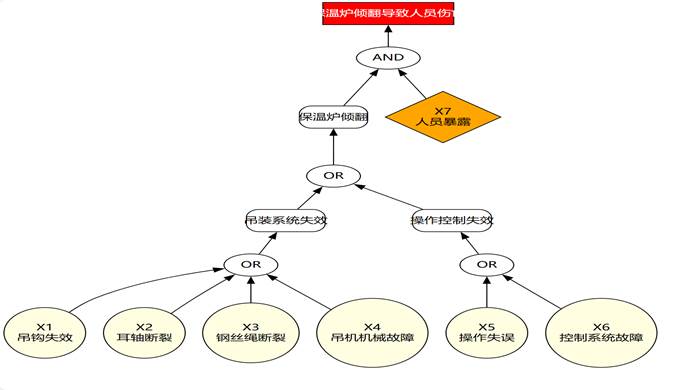 以“保温炉倾翻事故”为顶事件进行故障树分析 |