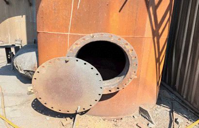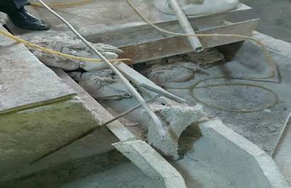 图3 漏钢回转溜槽不符合要求(连接段不能使用、起始端未封堵) |