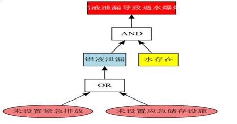 以“熔融金属遇水爆炸”为顶事件进行故障树分析 |