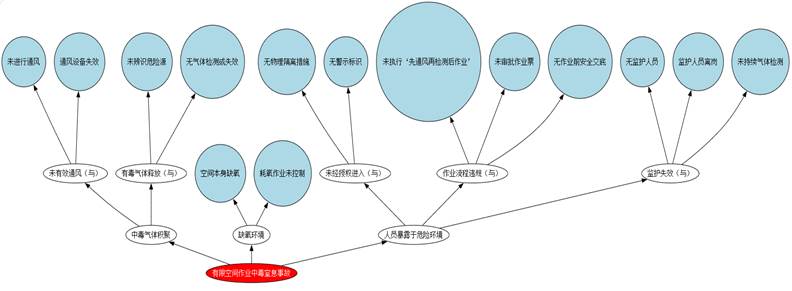 以“有限空间作业导致中毒窒息事故”为顶事件进行故障树分析 |
