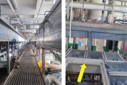 自动电镀生产线镀槽液面聚集大量泡沫并溢出 |